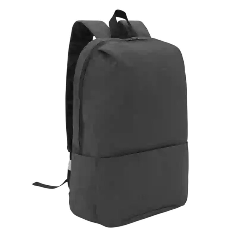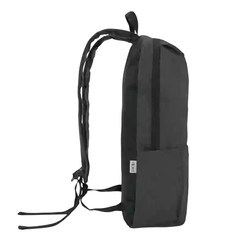 Mochila basica portanotebook de polyester sustentable RPET, confeccionada a partir de botellas recicladas. Cuenta con un bolsillo exterior tipo sobre. Medidas: 43,5 x 28,5 x 12 cm. Capacidad 14L. Notebook: 15,6". Disponible en color gris oscuro